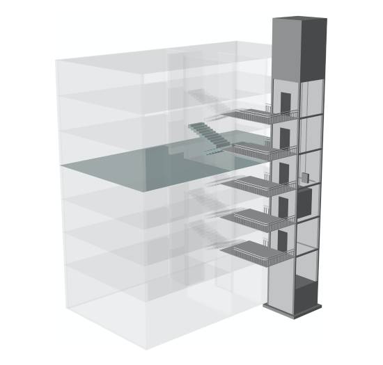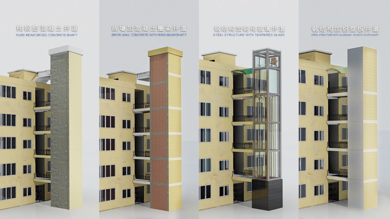 平層入戶是指電梯出入口位于樓梯平面,實現乘坐電梯直達指定樓層。直平臺式(平層入戶)可從住宅樓正面實現入戶,要求建筑物的正面空間足夠寬廣,加裝電梯后進出樓梯的距離滿足相關安全走火通道等要求。